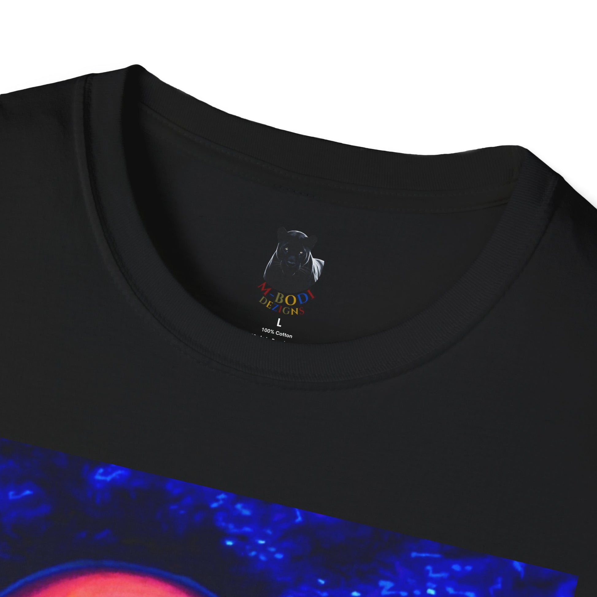 The shirt features a vivid, high-contrast portrait bathed in electric hues of deep blue, fiery red, and golden undertones — a color palette that exudes strength, beauty, and undeniable presence. This striking artwork is printed on a soft black backdrop, making every shade pop with cinematic intensity. Designed to embody the legacy of fearless women who broke barriers and redefined beauty, the “Foxy Fierce” tee reminds you that confidence never goes out of style.