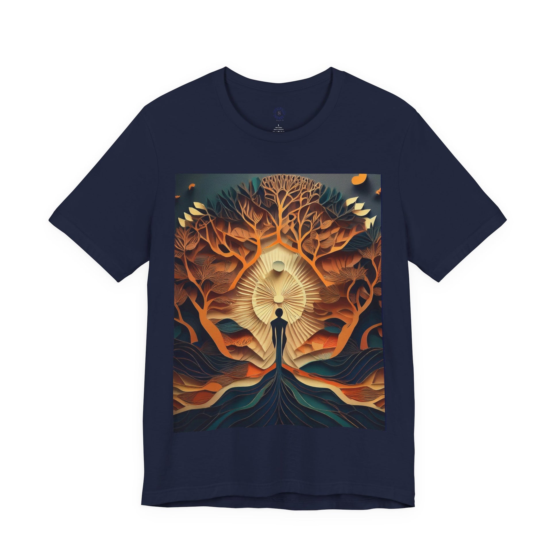 This tee embodies balance, strength, and growth—reminding us that true power comes from being grounded while reaching higher. The bold design, featuring a radiant figure rooted in the earth and rising toward the light, symbolizes resilience, transformation, and the eternal journey of the soul.