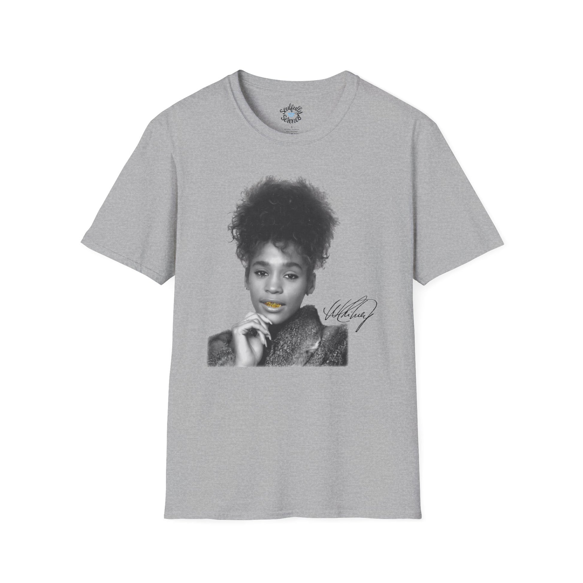 Channel legendary energy with this Whitney Houston tribute t-shirt that fuses old-school glam with modern streetwear attitude. Featuring a stunning black-and-white portrait of Whitney in a luxe fur coat and a bold gold grill, this design celebrates Black excellence and timeless soul with a fresh, fearless twist. Perfect for fans of vintage R&B and hip-hop fashion, this tee exudes style, soul, and unapologetic authenticity, making it ideal for casual wear, concerts, or gifting.